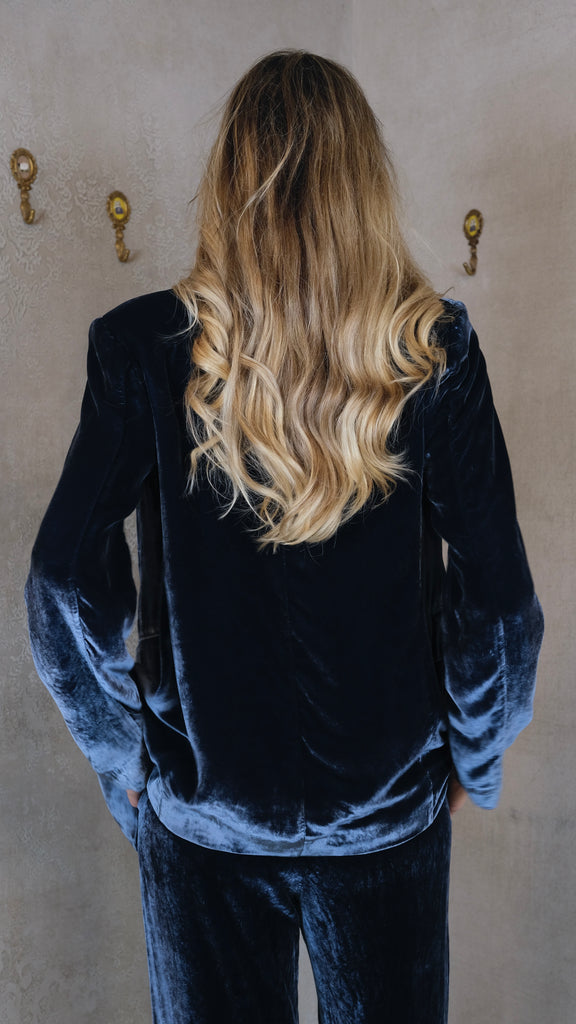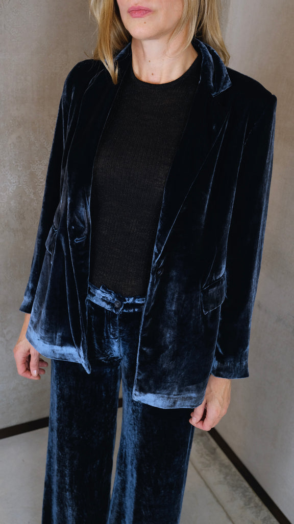 Giacca in velluto di seta con revers e chiusura a 1 bottone.