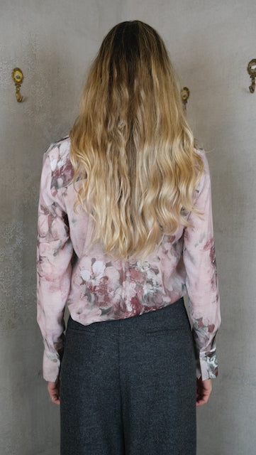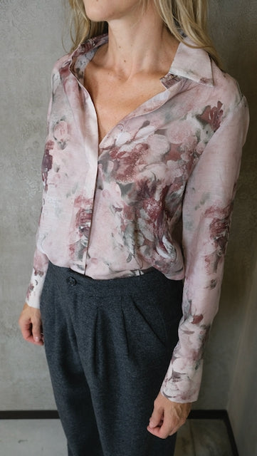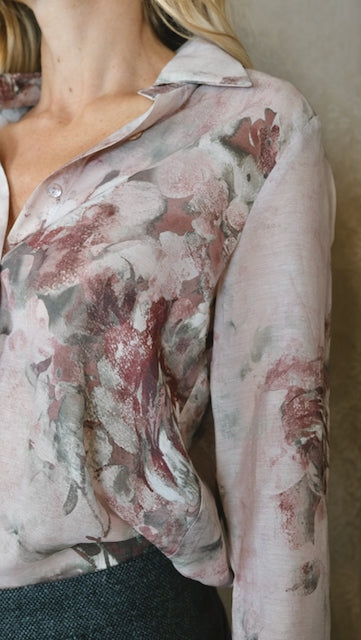 Camicia a fantasia floreale nei toni del rosa e bordeaux.