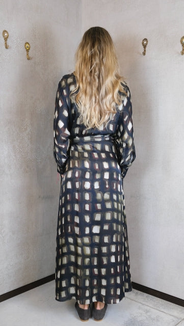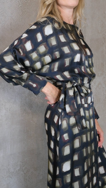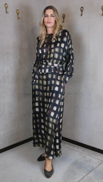 Polso a camicia e cintura in tessuto.
